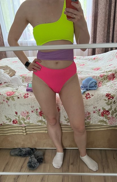 Przyszło szybko, rozmiar L leży b.dobrze, wszystko ładnie zakryte, stanik dobrze trzyma piersi. 🙂